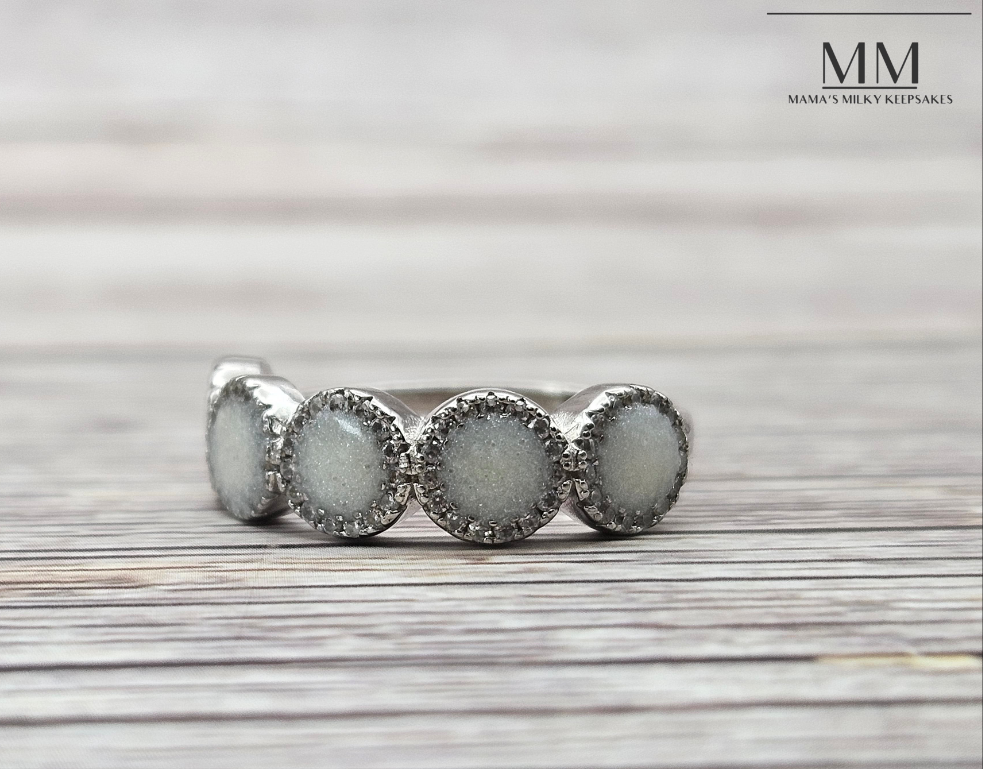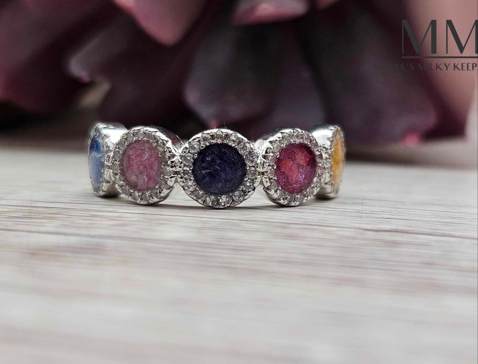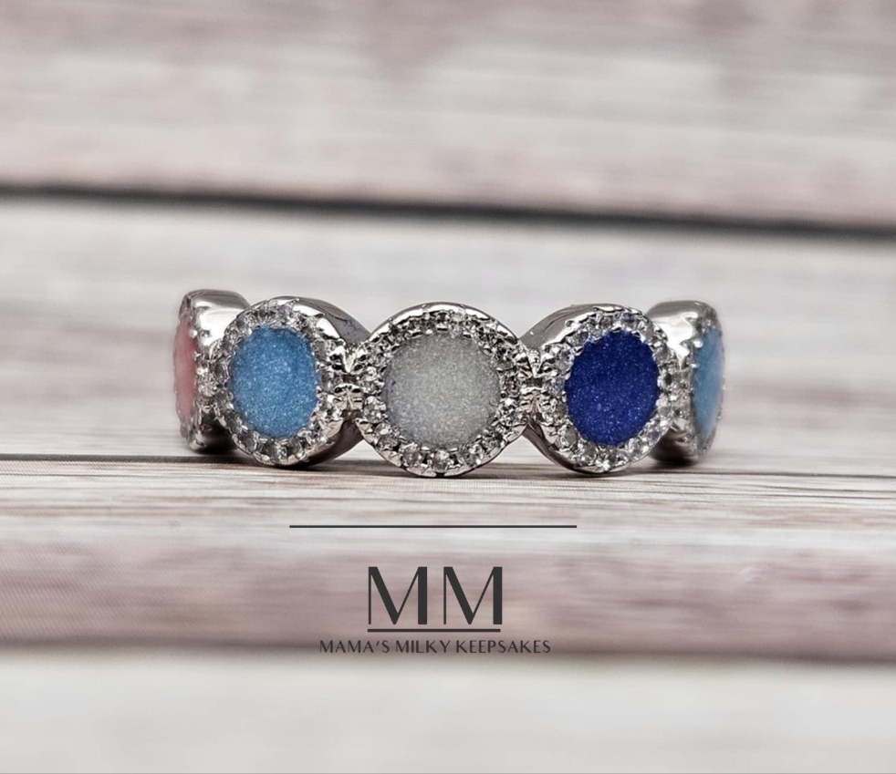 ♡Stone size: Five 4mm round made with your inclusions, this piece can hold anything you want it to hold including breastmilk, ashes, formula, hair, pet hair, pet ashes, gravesite soil, dried flowers, umbilical cord, encapsulated placenta, fabric, etc.