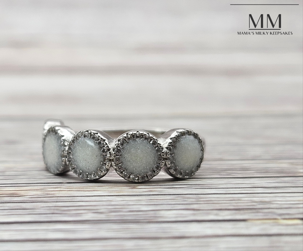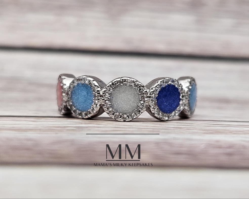 ♡Stone size: Five 4mm round stones made with your inclusions, this piece can hold anything you want it to hold including breastmilk, ashes, formula, hair, pet hair, pet ashes, gravesite soil, dried flowers, umbilical cord, encapsulated placenta, fabric, etc.