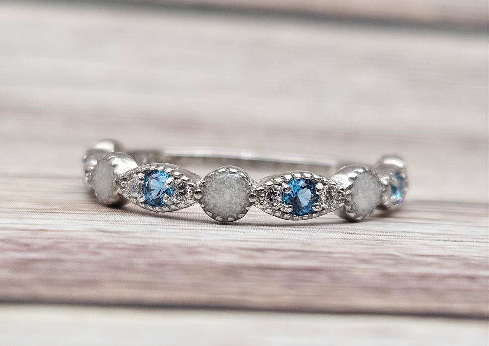 There are four 2 mm round mounts to add your milk or ash / cremation stones.