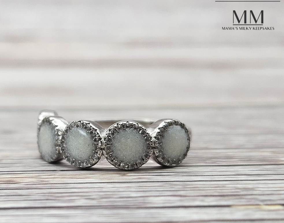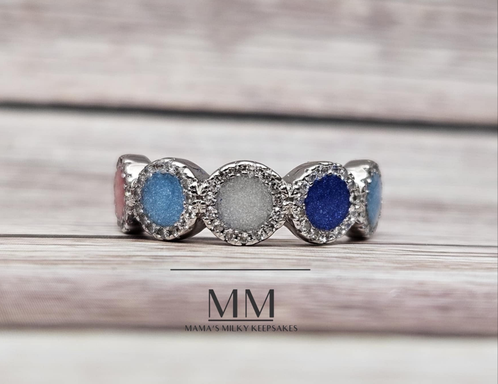 ♡Stone size: Five 4mm round made with your inclusions, this piece can hold anything you want it to hold including breastmilk, ashes, formula, hair, pet hair, pet ashes, gravesite soil, dried flowers, umbilical cord, encapsulated placenta, fabric, etc.