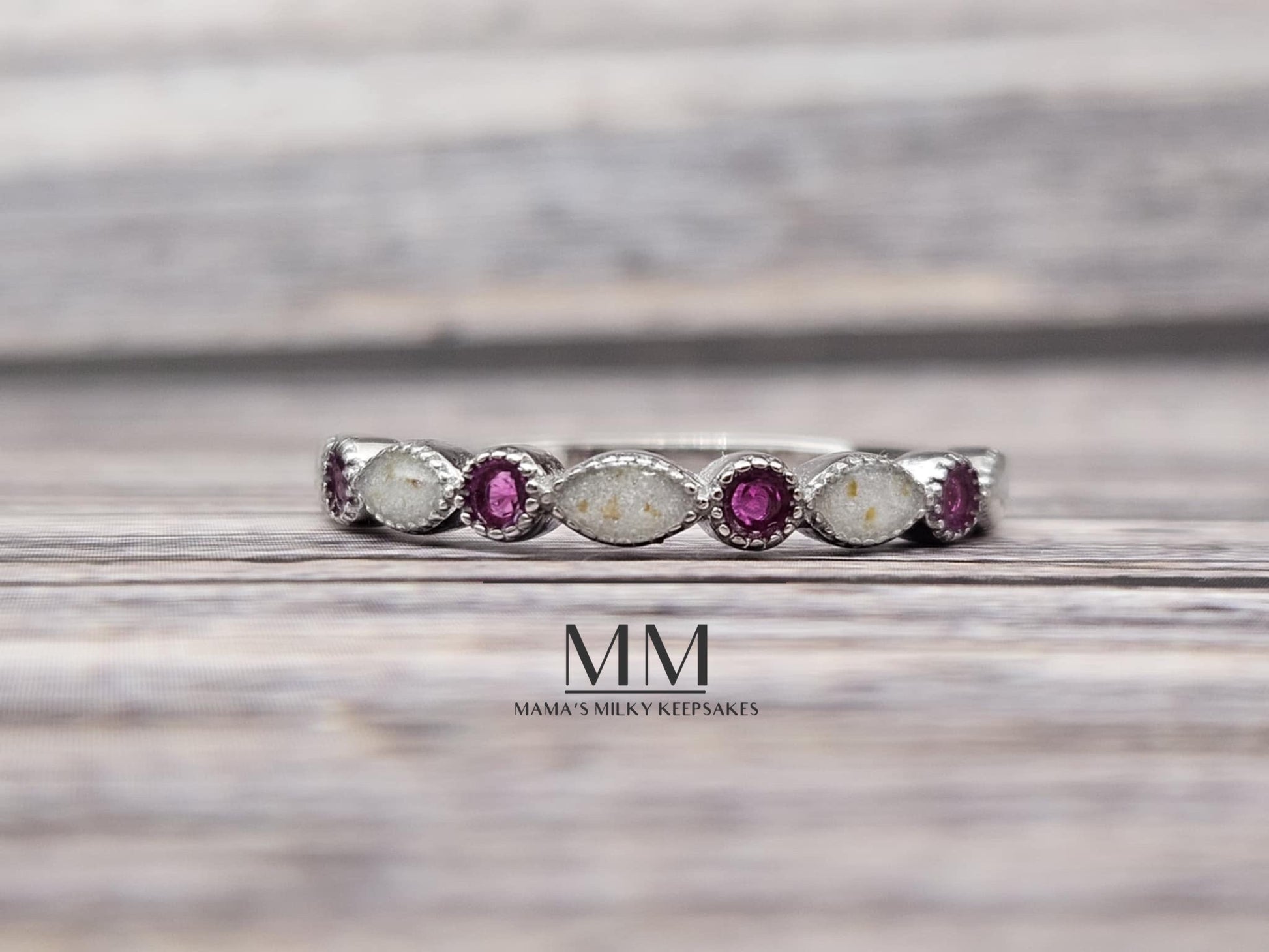 I can add whatever you want, into whatever piece you want. Ashes, formula, and soil work just the same as breastmilk so you are not limited to the piece(s) you can choose. For hair, fabric, flowers, etc I recommend choosing something with a bigger main stone and nothing like a stacking ring, so you can see your inclusions especially if you want it shaped any certain way or to see any particular pattern, lace, or texture. This is something we can talk about individually though for sure!