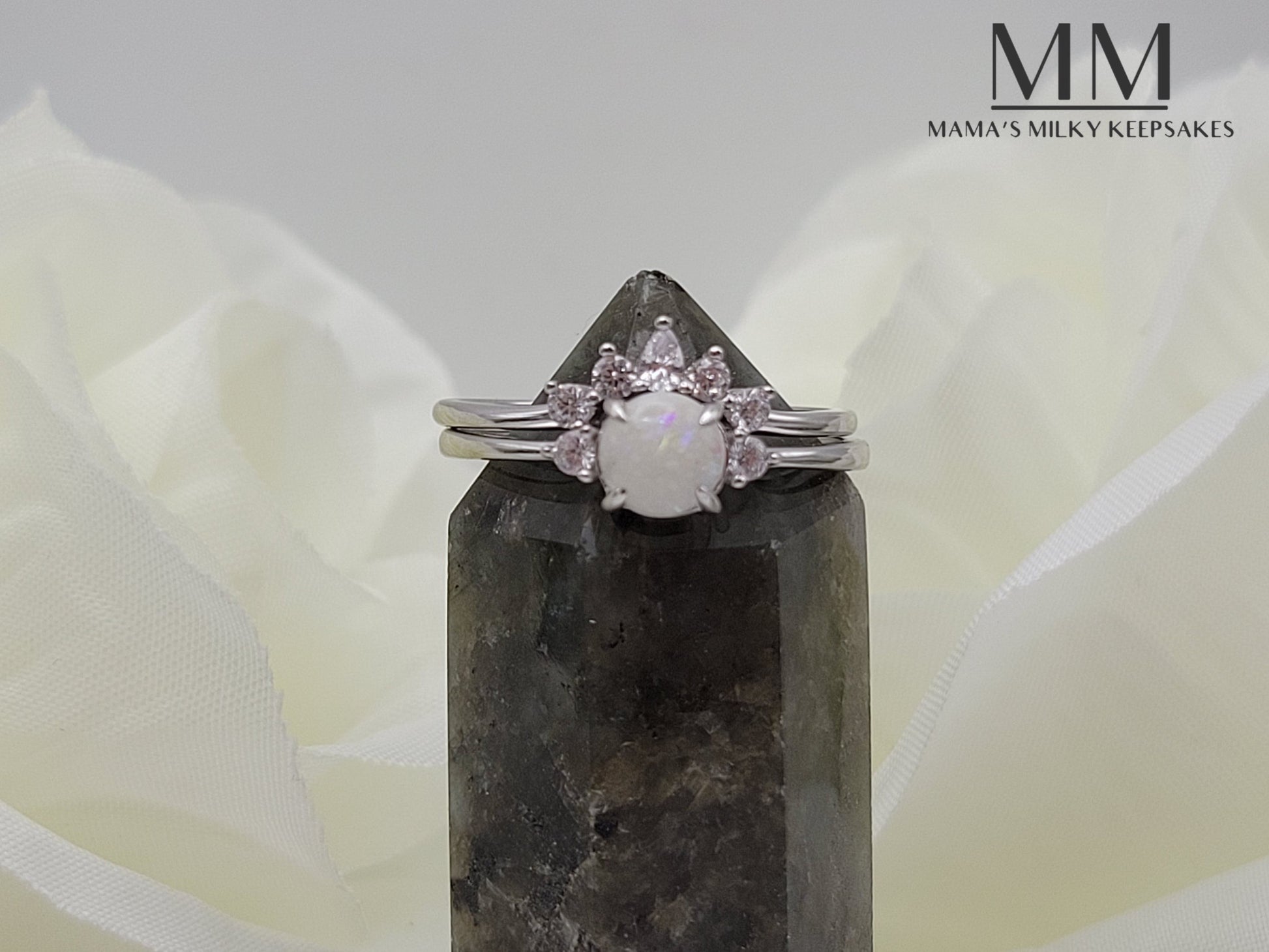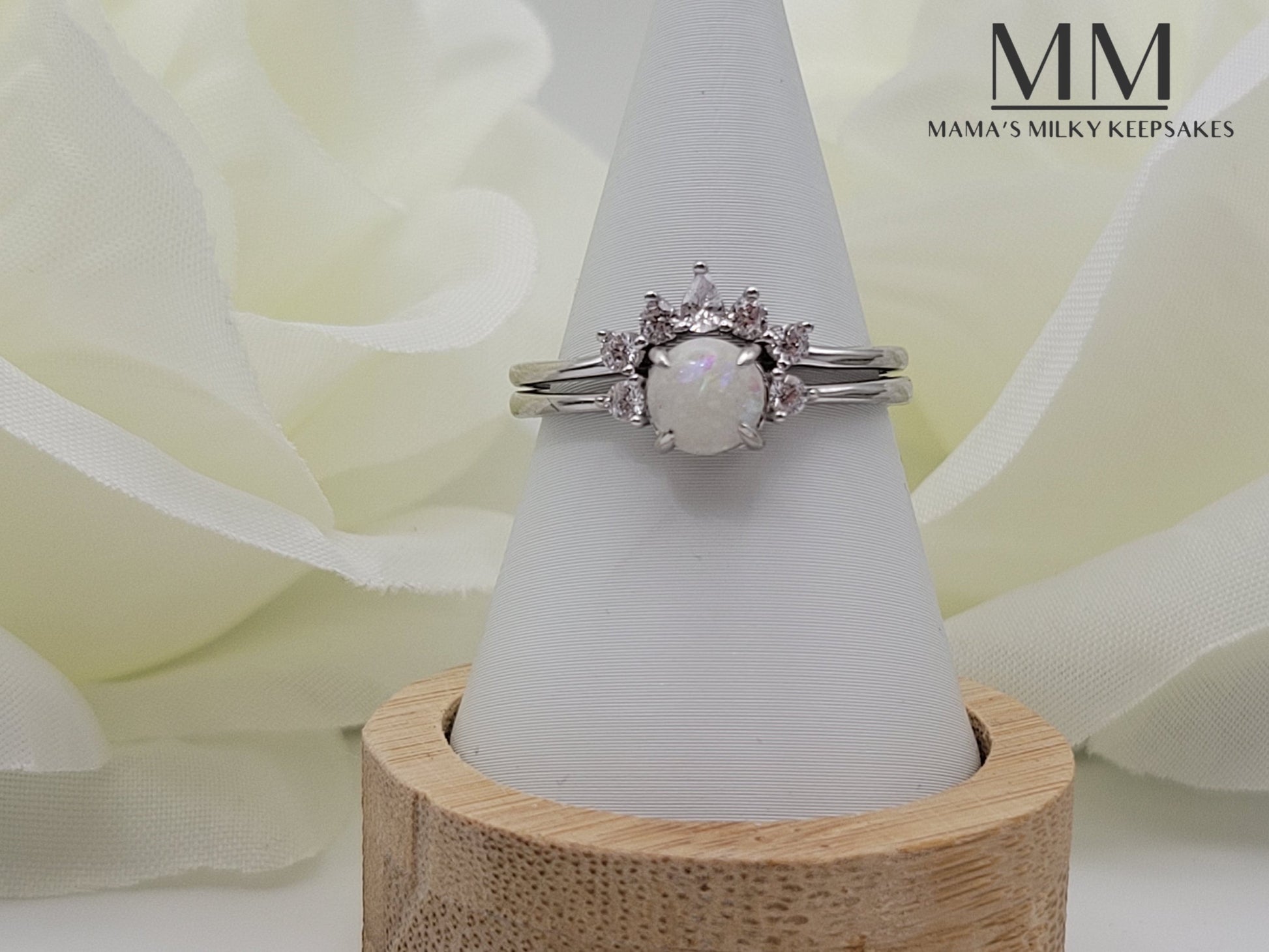 I can add whatever you want, into whatever piece you want. Ashes, formula, and soil work just the same as breastmilk so you are not limited to the piece(s) you can choose. For hair, fabric, flowers, etc I recommend choosing something with a bigger main stone and nothing like a stacking ring, so you can see your inclusions especially if you want it shaped any certain way or to see any particular pattern, lace, or texture. This is something we can talk about individually though for sure!