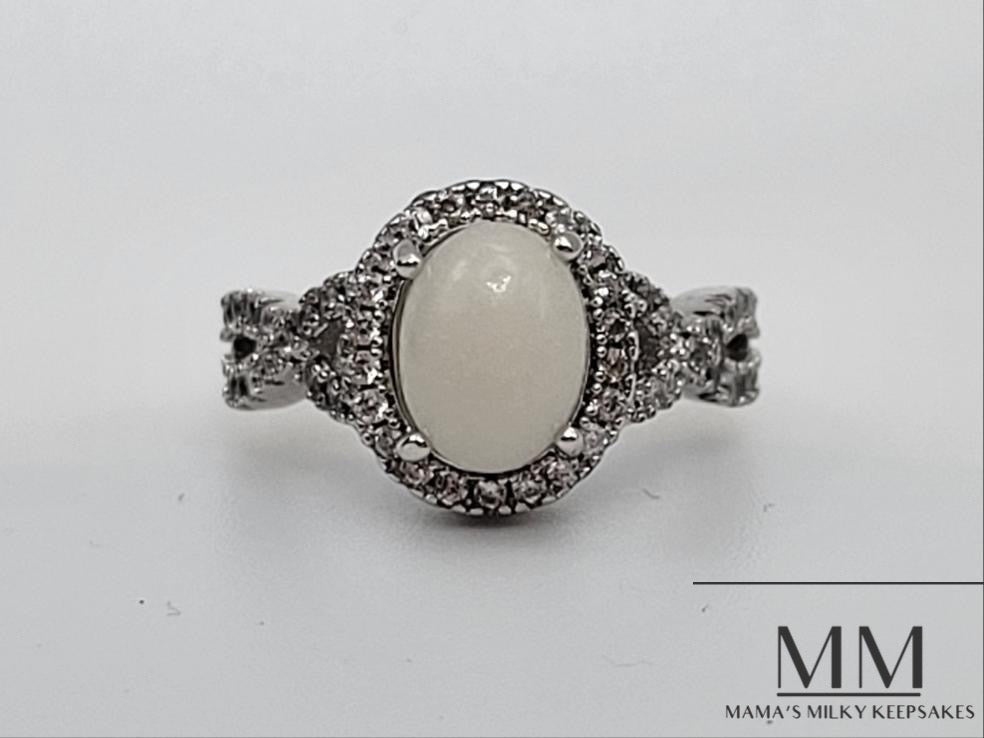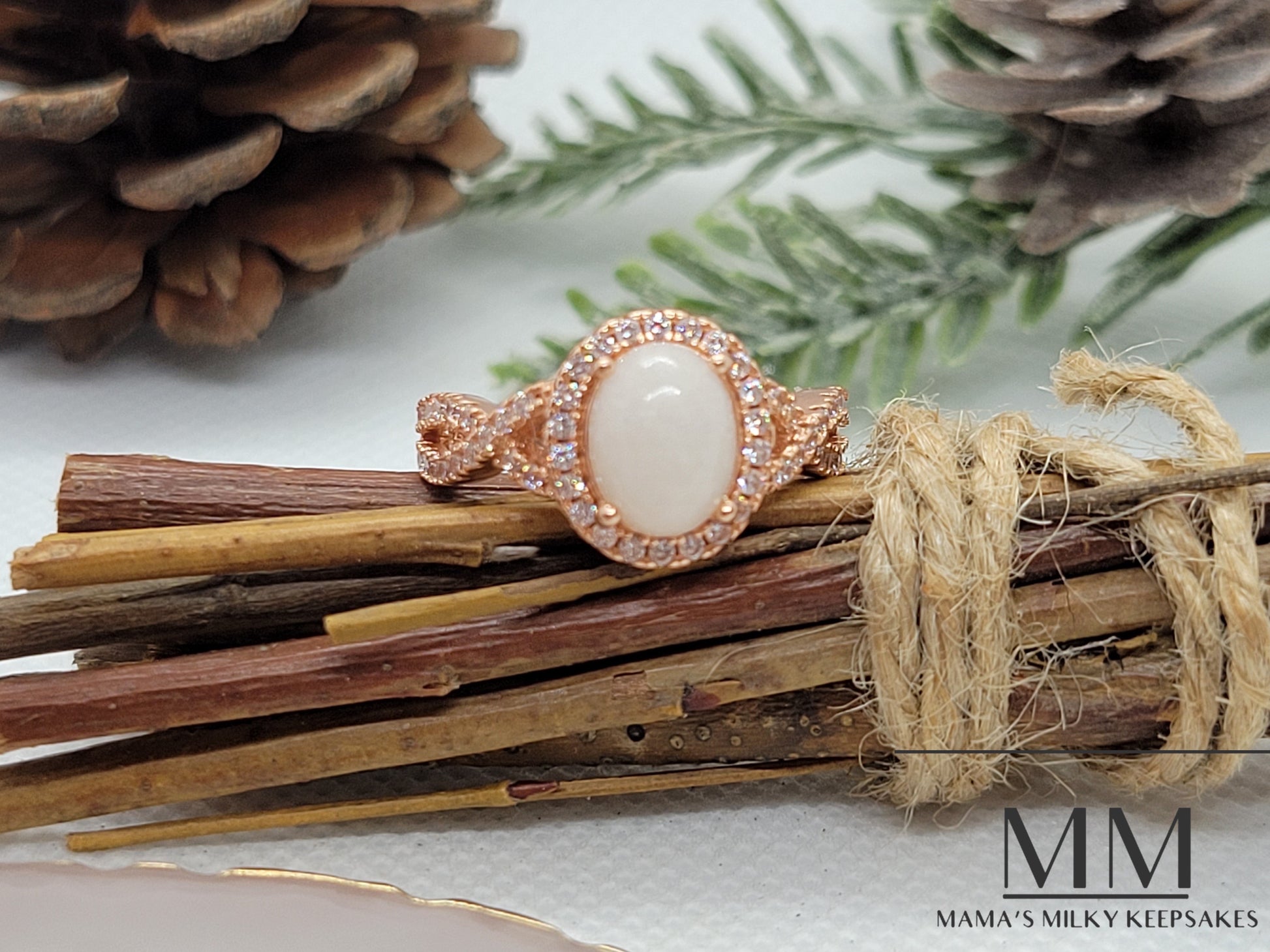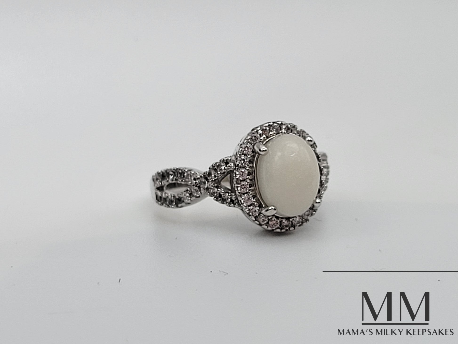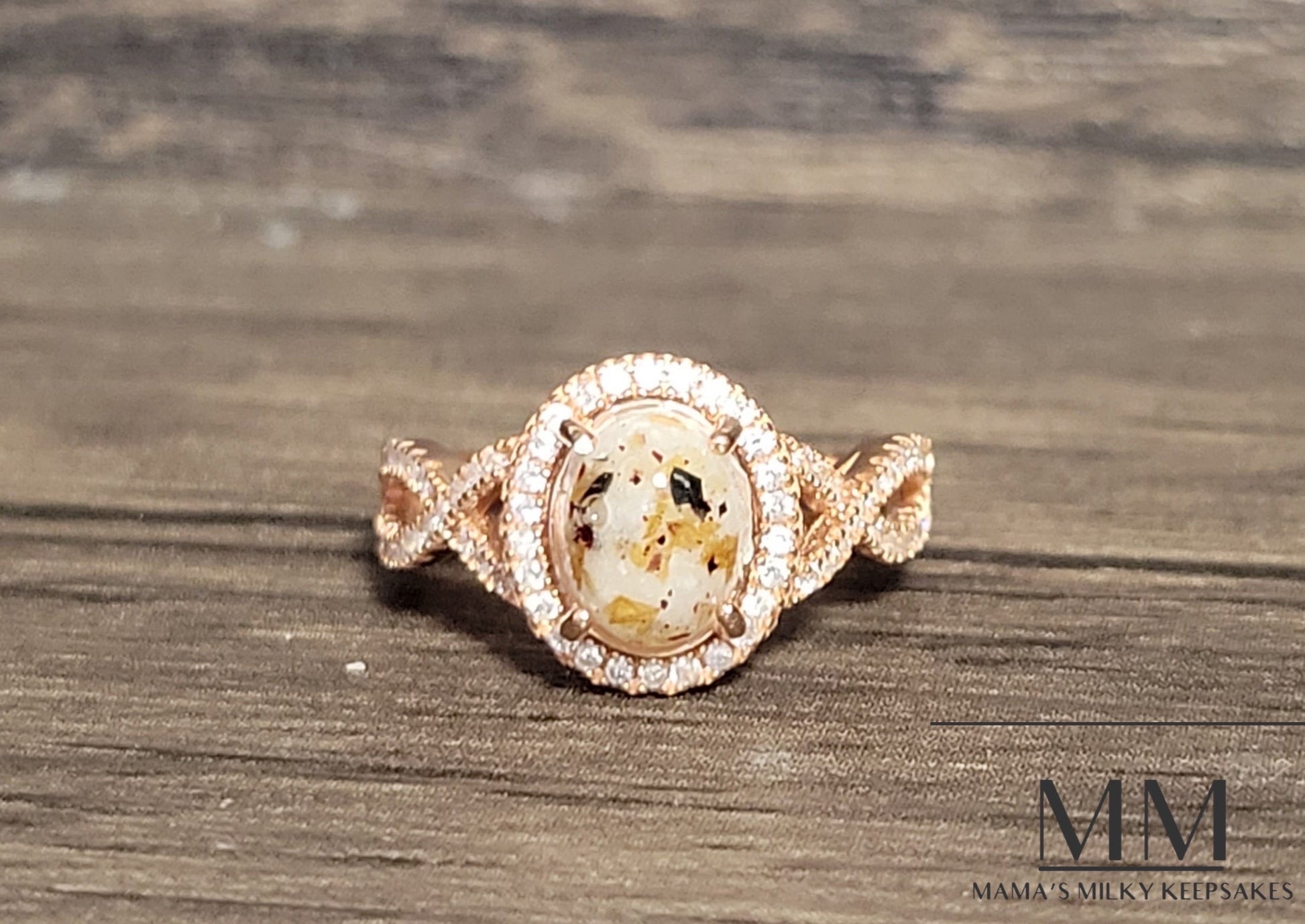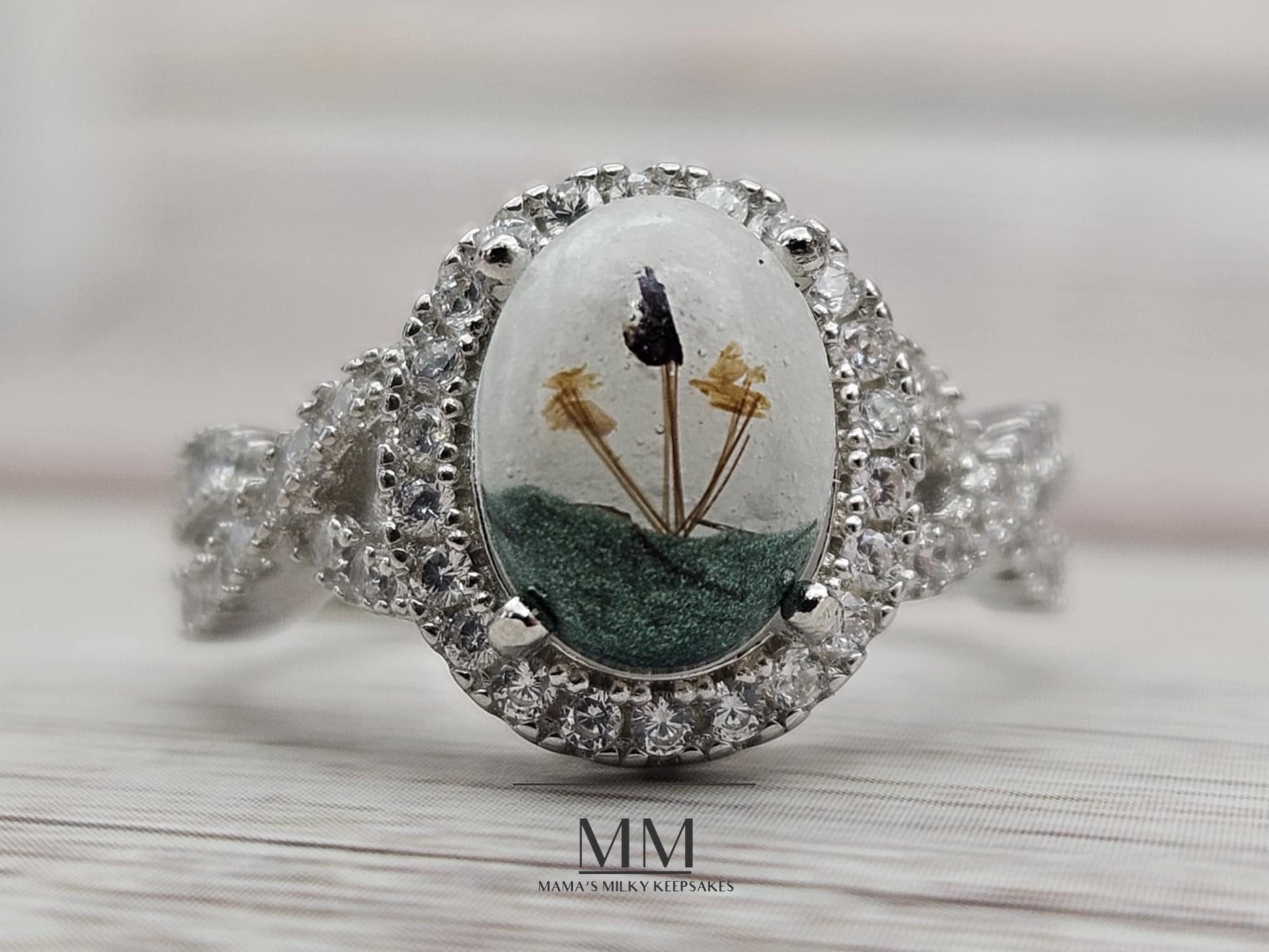 I can add whatever you want, into whatever piece you want. Ashes, formula, and soil work just the same as breastmilk so you are not limited to the piece(s) you can choose. For hair, fabric, flowers, etc I recommend choosing something with a bigger main stone and nothing like a stacking ring, so you can see your inclusions especially if you want it shaped any certain way or to see any particular pattern, lace, or texture. This is something we can talk about individually though for sure!