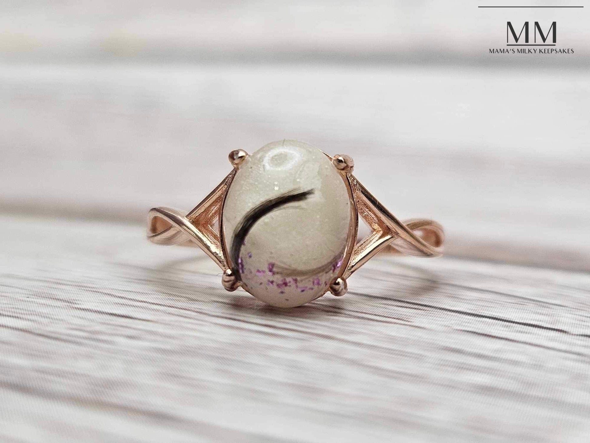 I can add whatever you want, into whatever piece you want. Ashes, formula, and soil work just the same as breastmilk so you are not limited to the piece(s) you can choose. For hair, fabric, flowers, etc I recommend choosing something with a bigger main stone and nothing like a stacking ring, so you can see your inclusions especially if you want it shaped any certain way or to see any particular pattern, lace, or texture. This is something we can talk about individually though for sure!