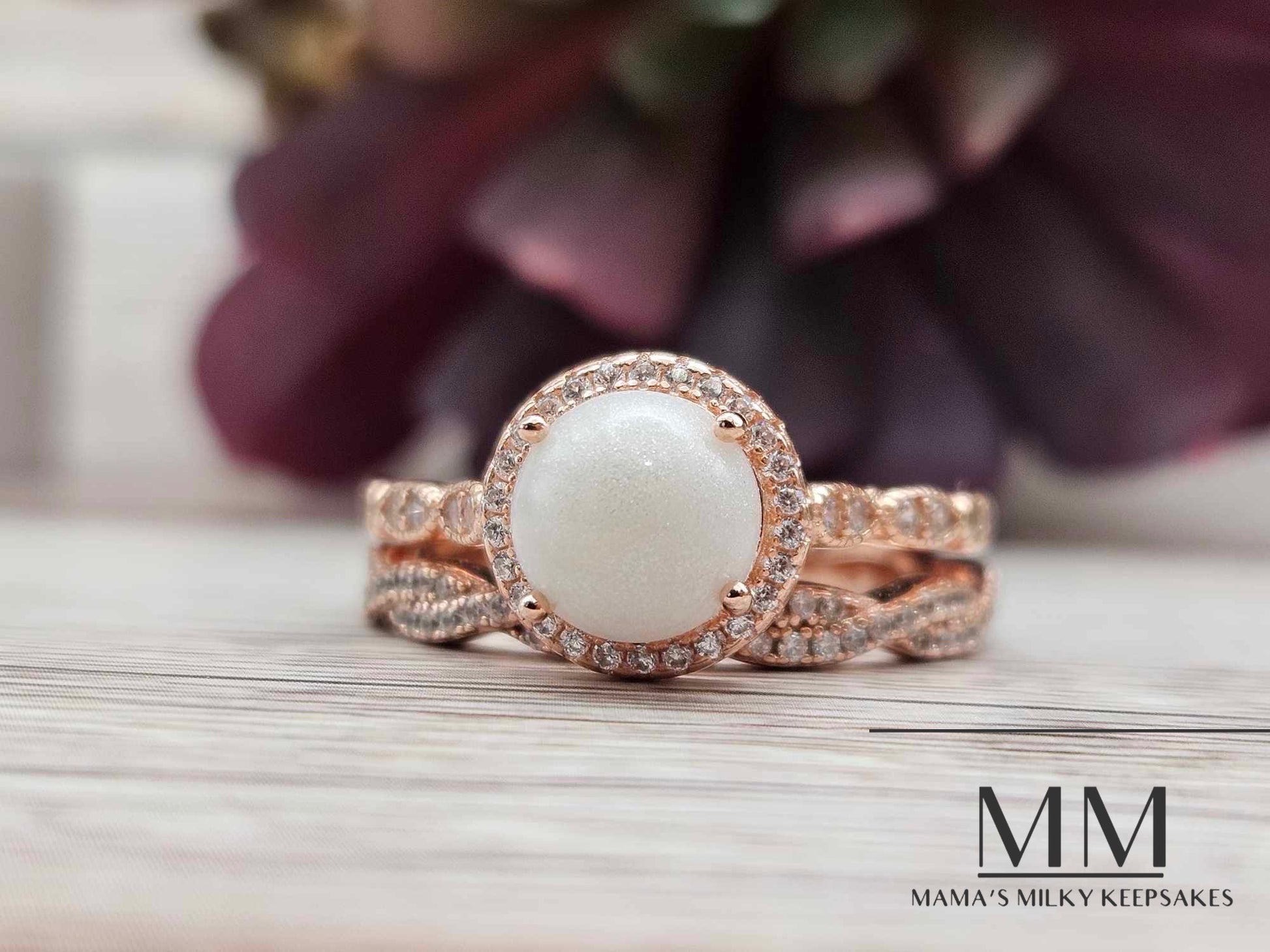 I can add whatever you want, into whatever piece you want. Ashes, formula, and soil work just the same as breastmilk so you are not limited to the piece(s) you can choose. For hair, fabric, flowers, etc I recommend choosing something with a bigger main stone and nothing like a stacking ring, so you can see your inclusions especially if you want it shaped any certain way or to see any particular pattern, lace, or texture. This is something we can talk about individually though for sure!