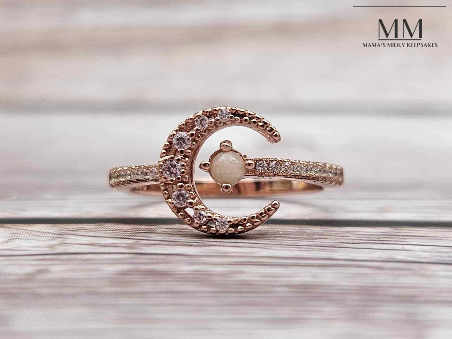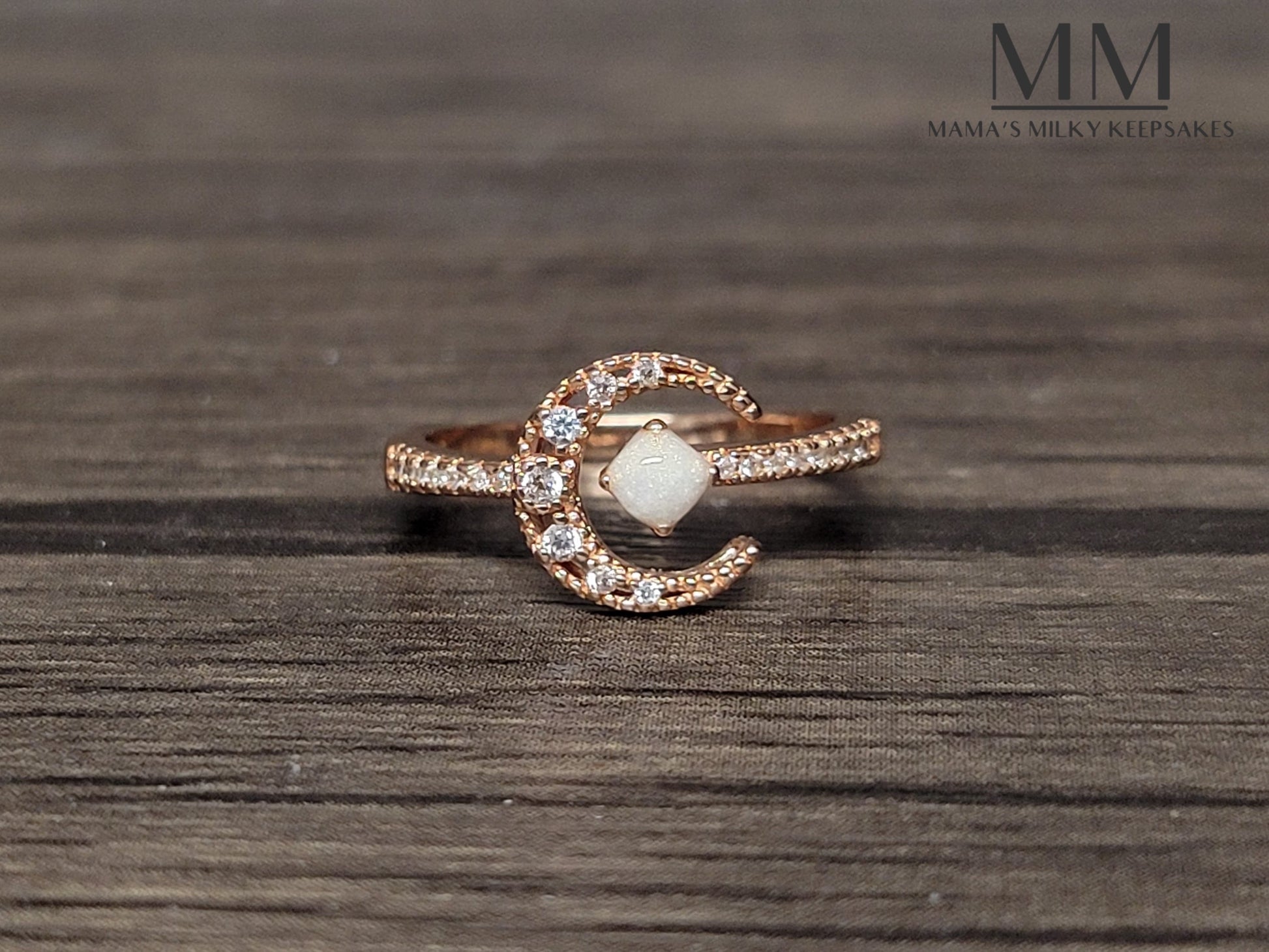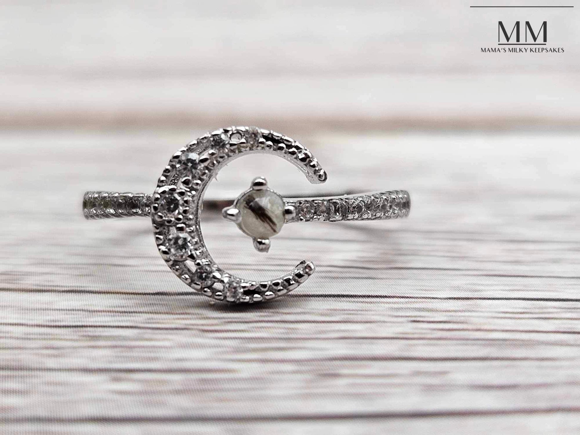 This ring holds a 3mm round stone made with your inclusions, this piece can hold anything you want it to hold including breastmilk, ashes, formula, hair, pet hair, pet ashes, (not limited to dogs, cat, horses, send me a message!), gravesite soil, dried flowers, umbilical cord, encapsulated placenta, fabric, ect.