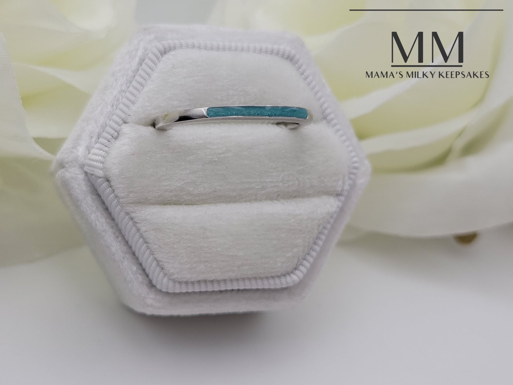 I can add whatever you want, into whatever piece you want. Ashes, formula, and soil work just the same as breastmilk so you are not limited to the piece(s) you can choose. For hair, fabric, flowers, etc I recommend choosing something with a bigger main stone and nothing like a stacking ring, so you can see your inclusions especially if you want it shaped any certain way or to see any particular pattern, lace, or texture. This is something we can talk about individually though for sure!