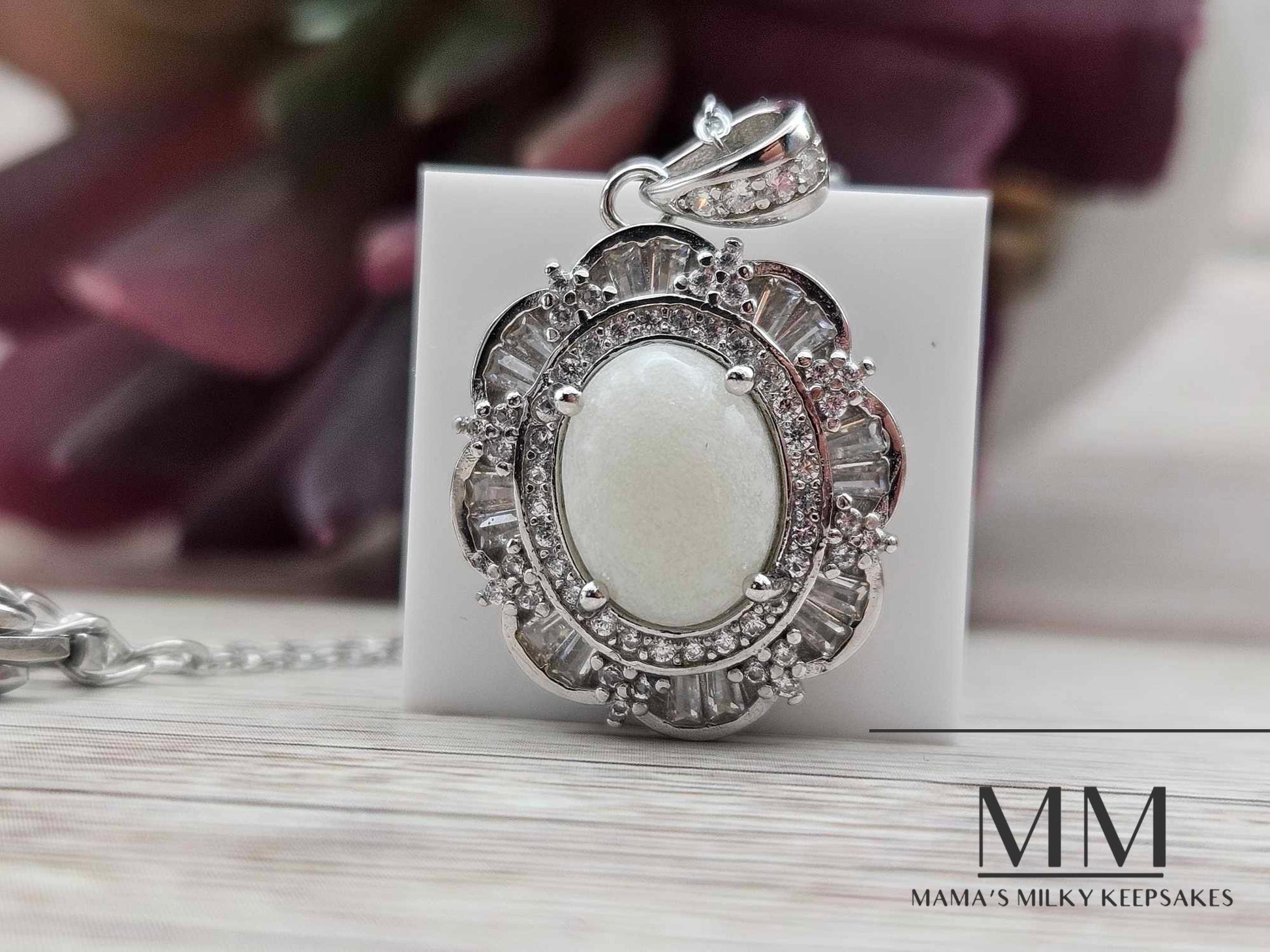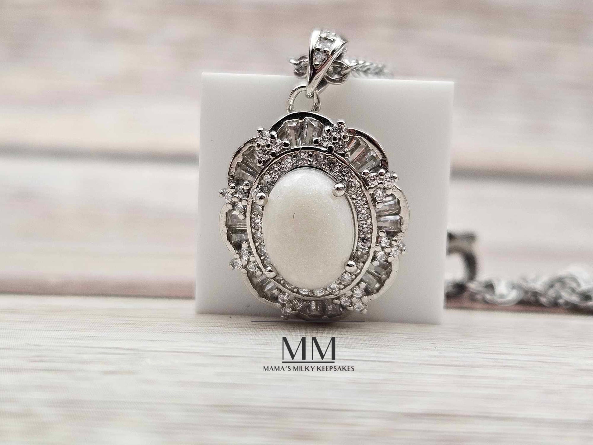 This necklace pendant holds a 8x10mm oval stone made with your inclusions, this piece can hold anything you want it to hold including breastmilk, ashes, formula, hair, pet hair, pet ashes, (not limited to dogs, cat, horses, send me a message!), gravesite soil, dried flowers, umbilical cord, encapsulated placenta, fabric, ect.