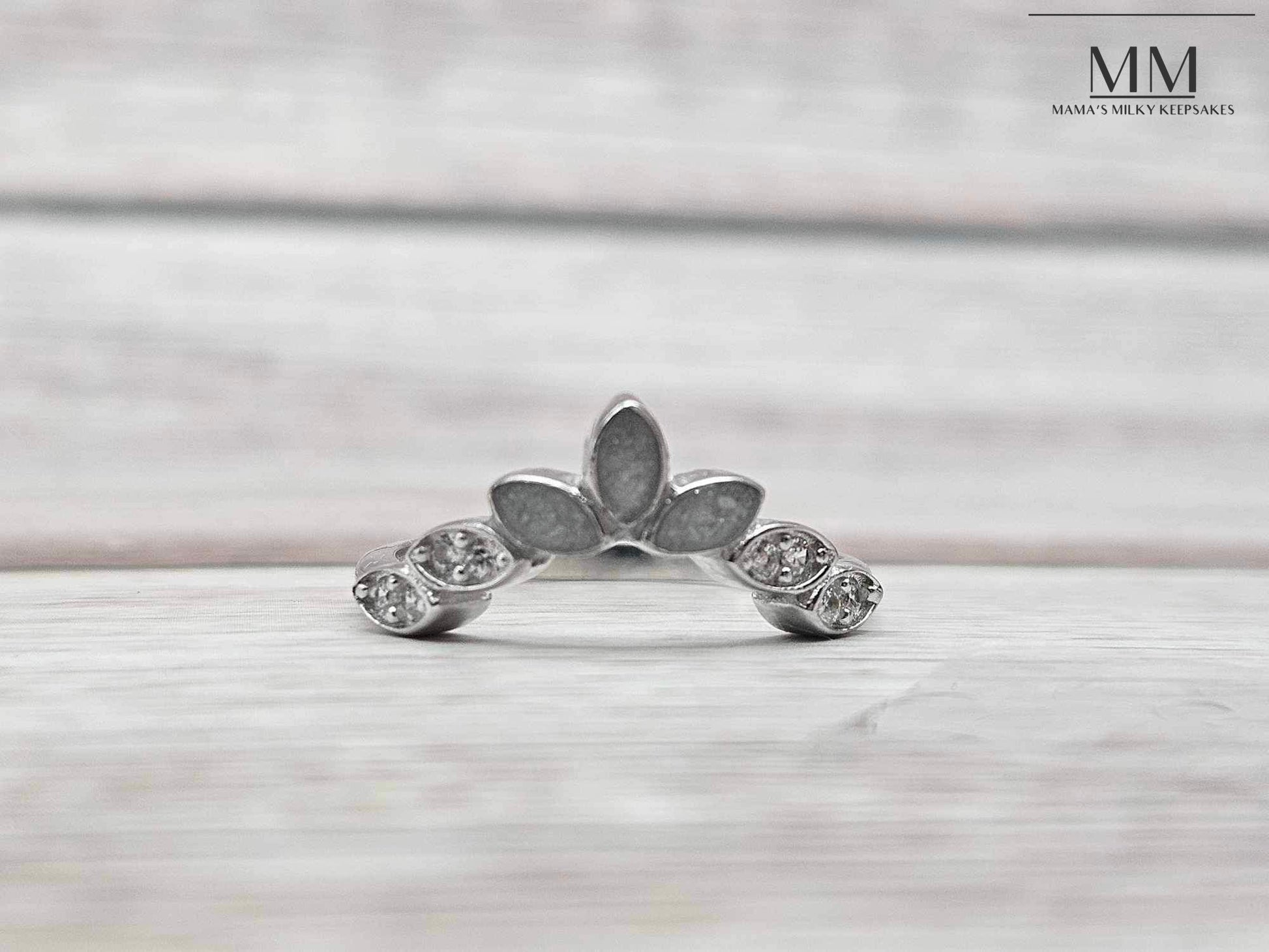 This ring holds three marquise stone made with your inclusions, this piece can hold anything you want it to hold including breastmilk, ashes, formula, hair, pet hair, pet ashes, (not limited to dogs, cat, horses, send me a message!), gravesite soil, dried flowers, umbilical cord, encapsulated placenta, fabric, ect.