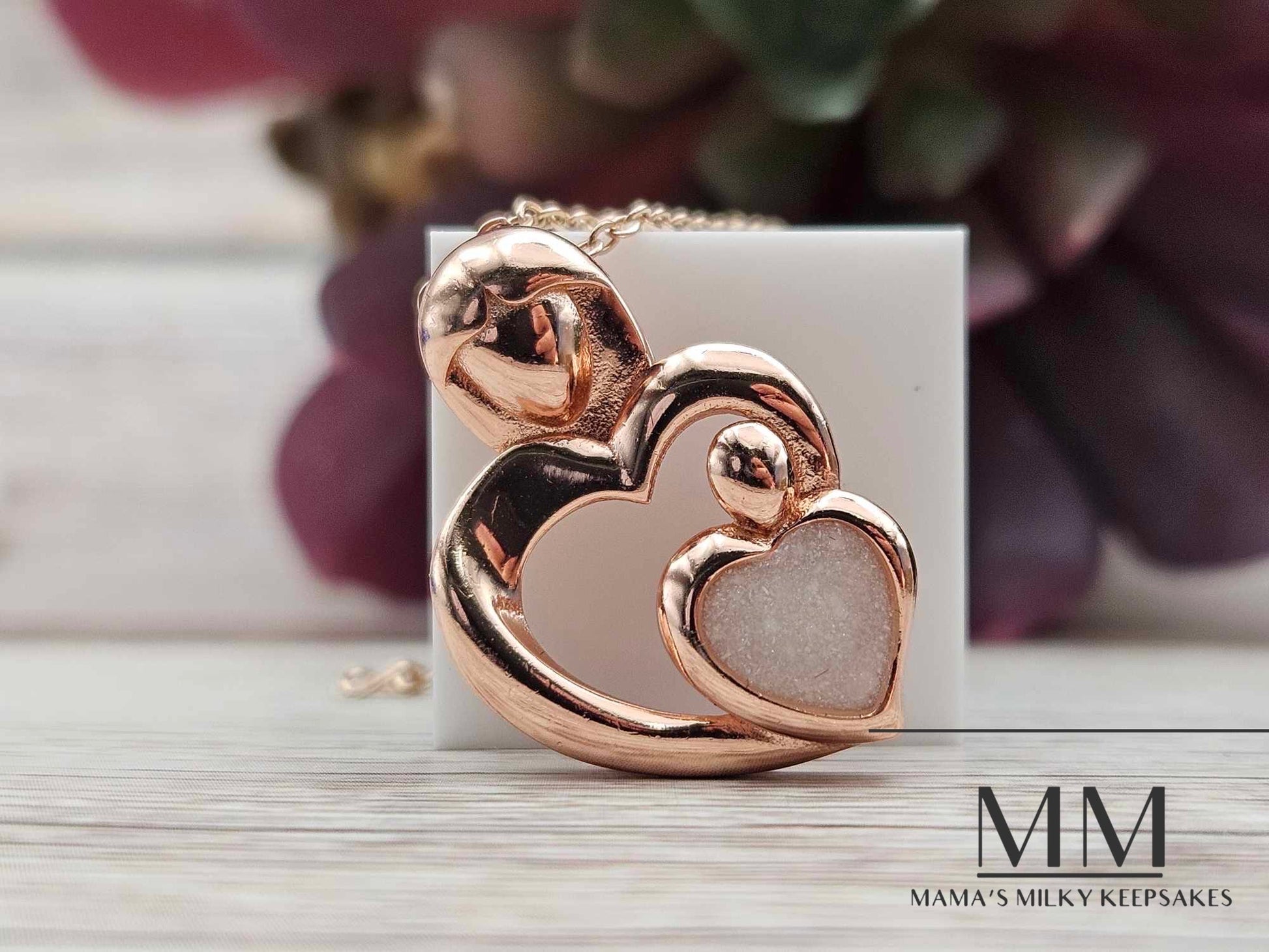 ♡ This necklace pendant has a mother and a babies heart made with your inclusions, this piece can hold anything you want it to hold including breastmilk, ashes, formula, hair, pet hair, pet ashes, (not limited to dogs, cat, horses, send me a message!), gravesite soil, dried flowers, umbilical cord, encapsulated placenta, fabric, etc.