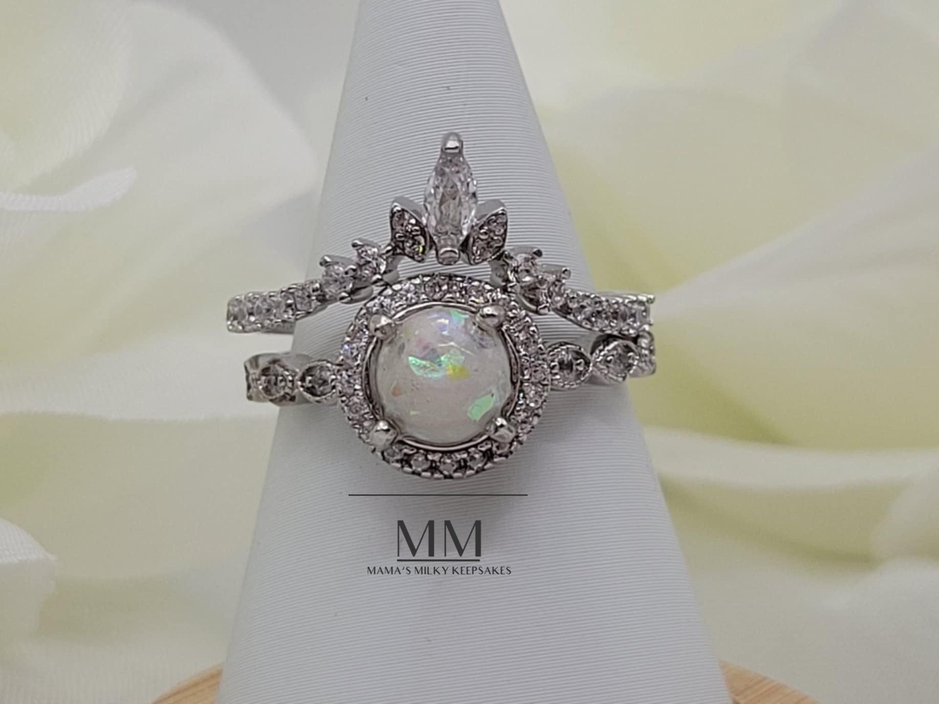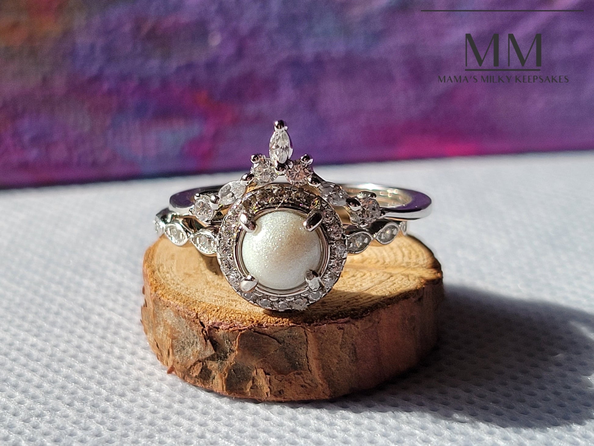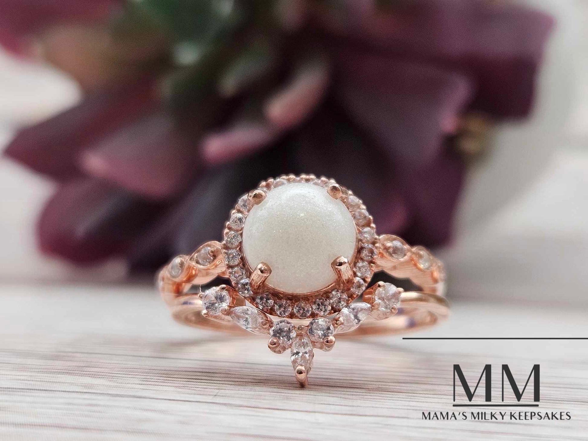 I can add whatever you want, into whatever piece you want. Ashes, formula, and soil work just the same as breastmilk so you are not limited to the piece(s) you can choose. For hair, fabric, flowers, etc I recommend choosing something with a bigger main stone and nothing like a stacking ring, so you can see your inclusions especially if you want it shaped any certain way or to see any particular pattern, lace, or texture. This is something we can talk about individually though for sure!