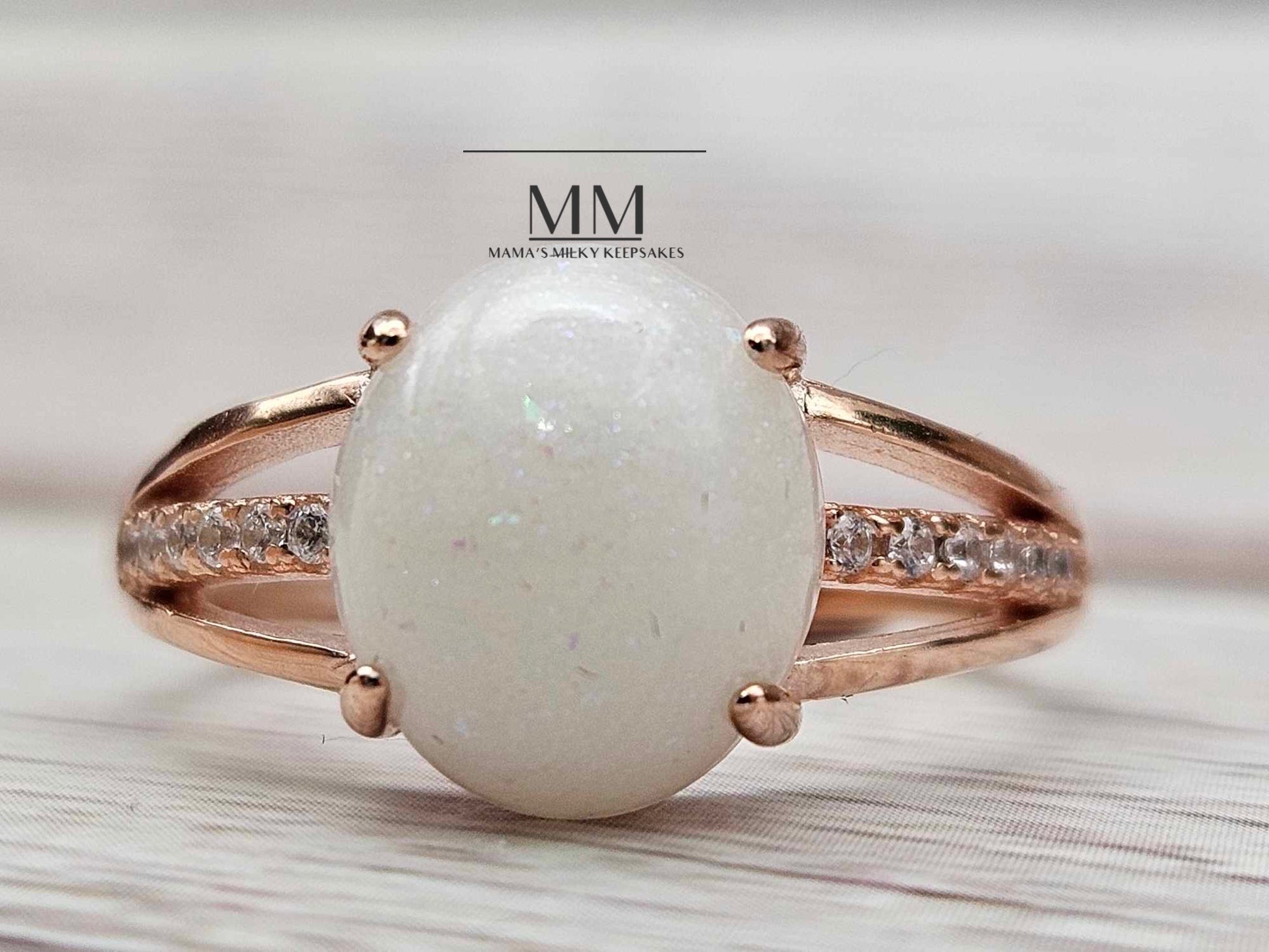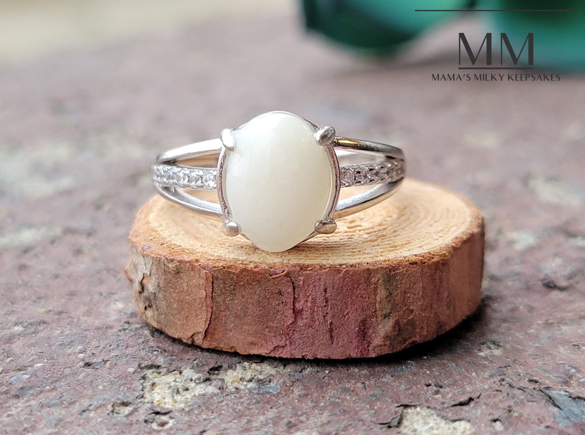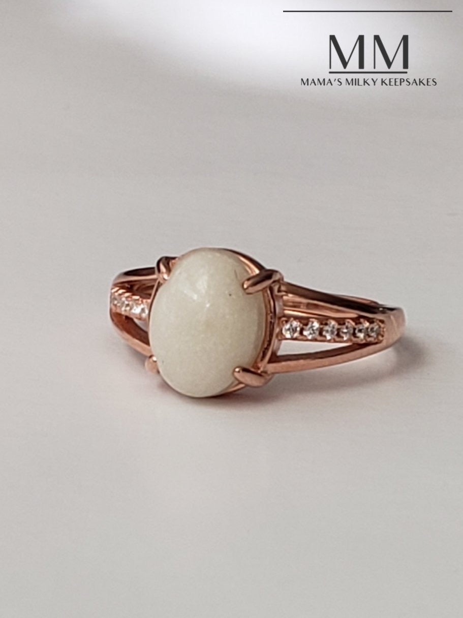 This ring holds a 8x9mm round stone made with your inclusions, this piece can hold anything you want it to hold including breastmilk, ashes, formula, hair, pet hair, pet ashes, (not limited to dogs, cat, horses, send me a message!), gravesite soil, dried flowers, umbilical cord, encapsulated placenta, fabric, ect.