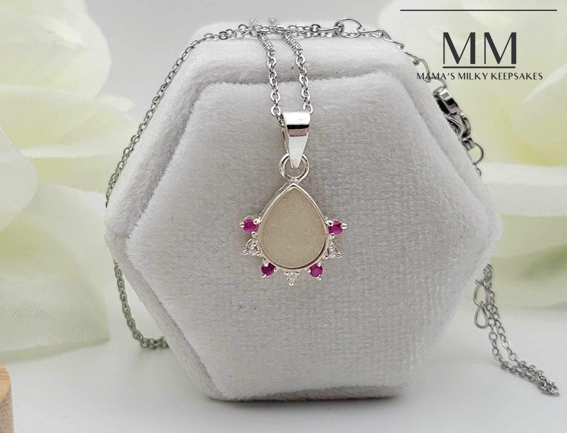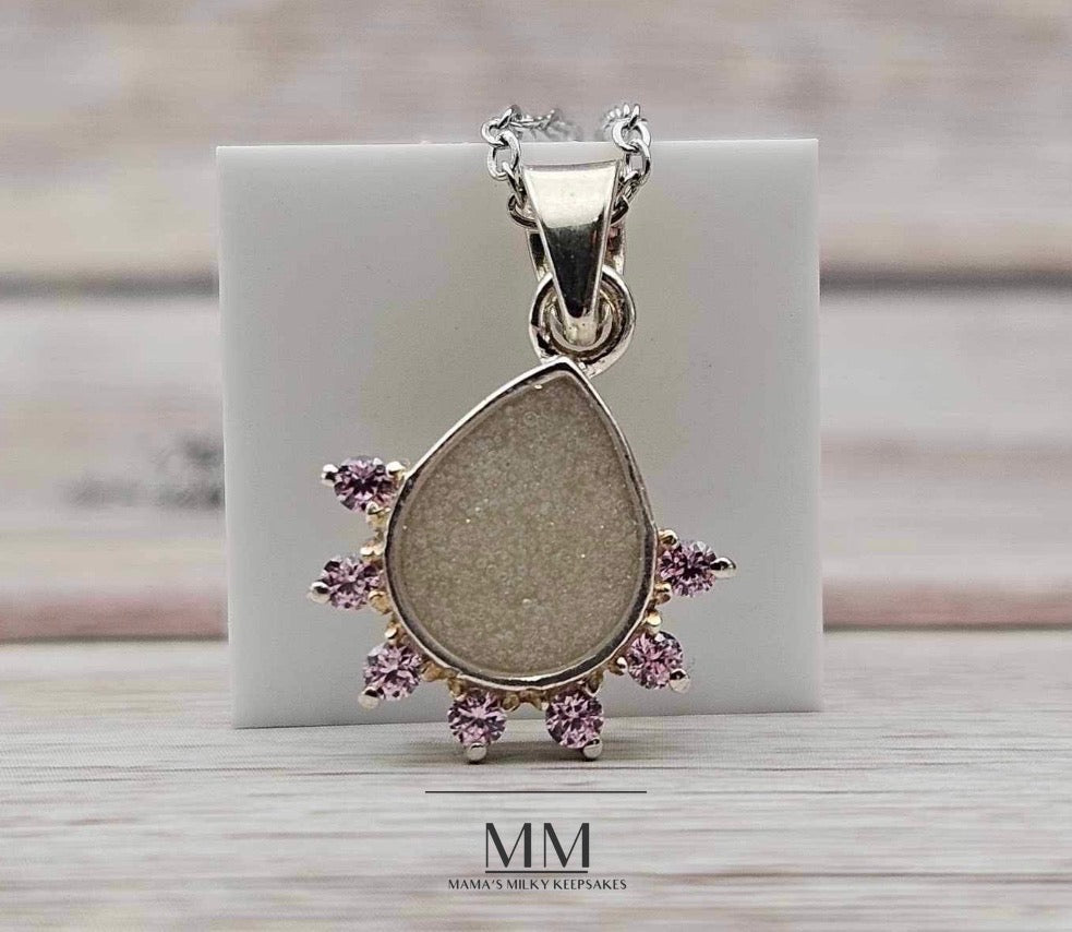 I can add whatever you want, into whatever piece you want. Ashes, formula, and soil work just the same as breastmilk so you are not limited to the piece(s) you can choose. For hair, fabric, flowers, etc I recommend choosing something with a bigger main stone and nothing like a stacking ring, so you can see your inclusions especially if you want it shaped any certain way or to see any particular pattern, lace, or texture. This is something we can talk about individually though for sure!