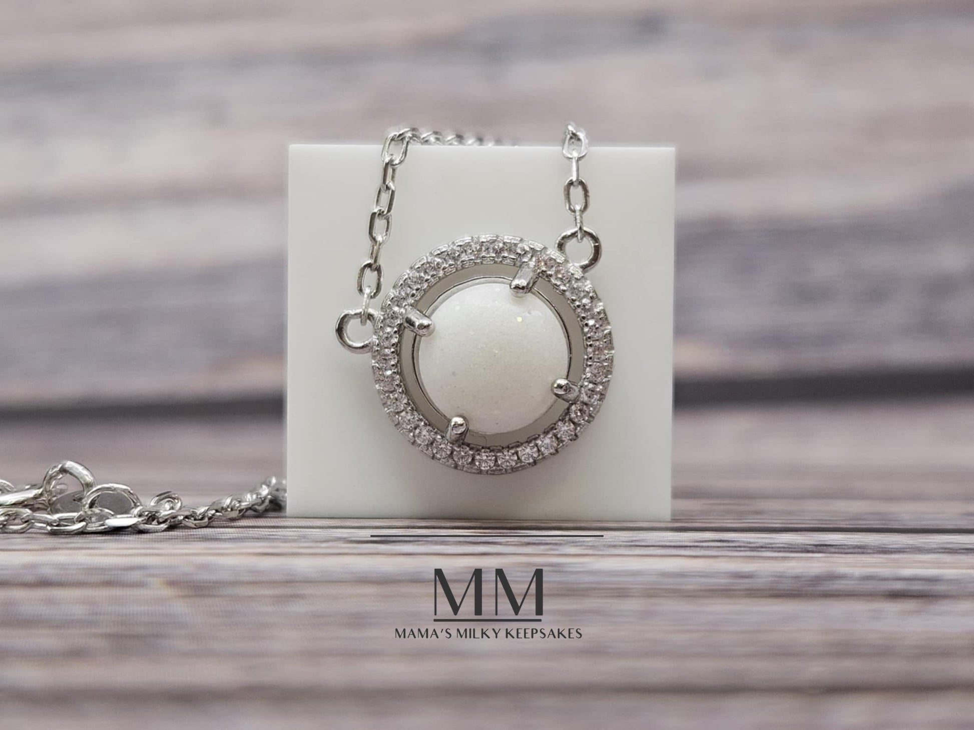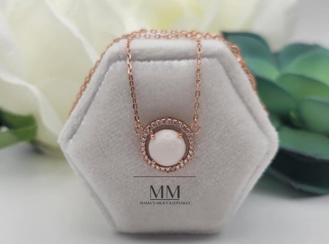 This necklace pendant holds a 8mm round stone made with your inclusions, this piece can hold anything you want it to hold including breastmilk, ashes, formula, hair, pet hair, pet ashes, (not limited to dogs, cat, horses, send me a message!), gravesite soil, dried flowers, umbilical cord, encapsulated placenta, fabric, ect.