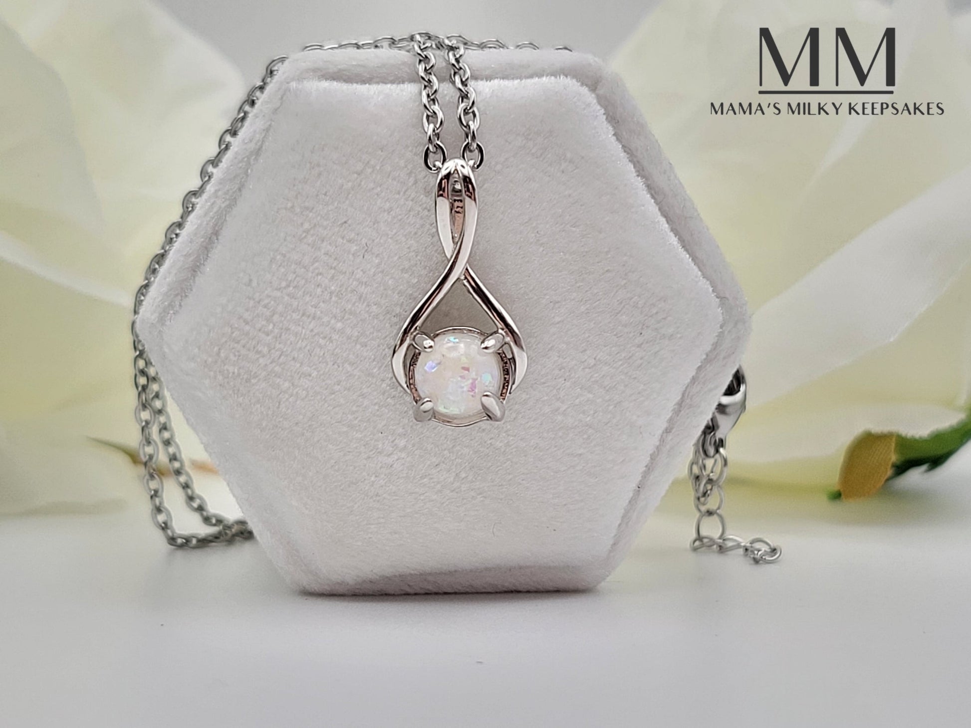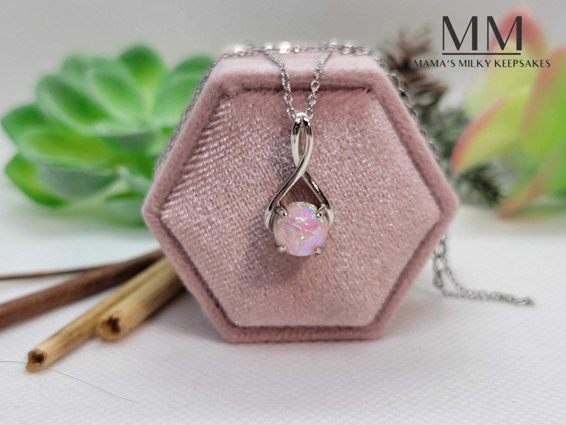 This necklace pendant holds a 8mm round stone made with your inclusions, this piece can hold anything you want it to hold including breastmilk, ashes, formula, hair, pet hair, pet ashes, (not limited to dogs, cat, horses, send me a message!), gravesite soil, dried flowers, umbilical cord, encapsulated placenta, fabric, ect.