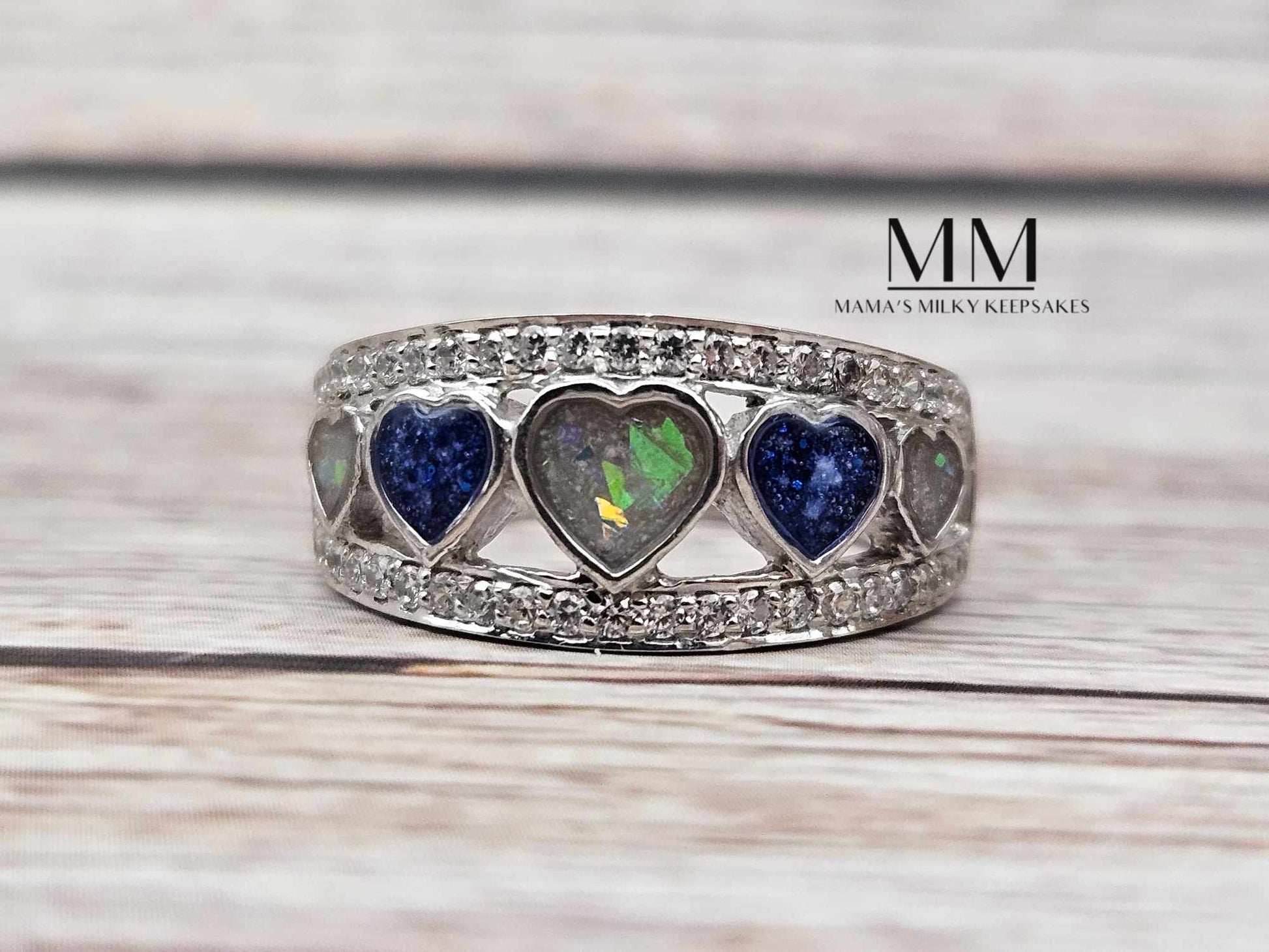 ♡ There are three 5 mm heart shaped stones and two 3 mm heart shaped stones to hold your breastmilk, baby hair, umbilical cord, loved ones ashes, gravesite soil, dried flowers, fabric, encapsulated placenta, or other inclusions you wish to treasure.