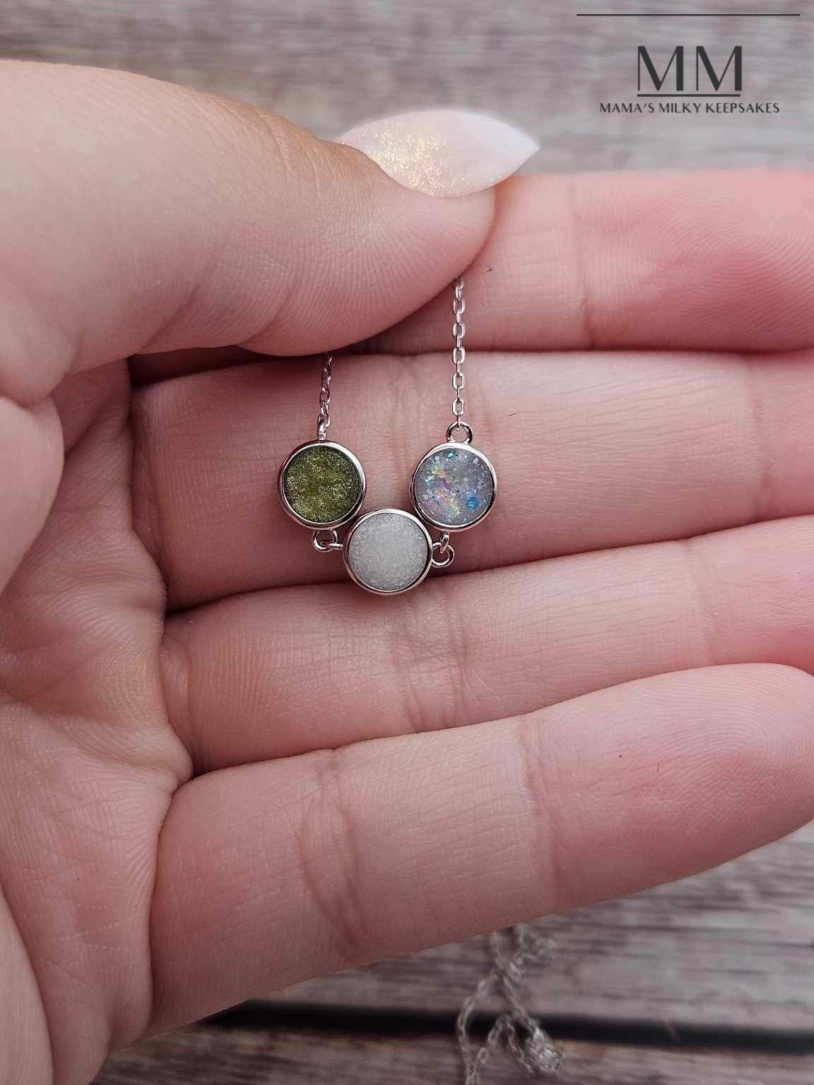 ♡Stone size: three 6mm round stone made with your inclusions, this piece can hold anything you want it to hold including breastmilk, ashes, formula, hair, pet hair, pet ashes, gravesite soil, dried flowers, umbilical cord, encapsulated placenta, fabric, etc.