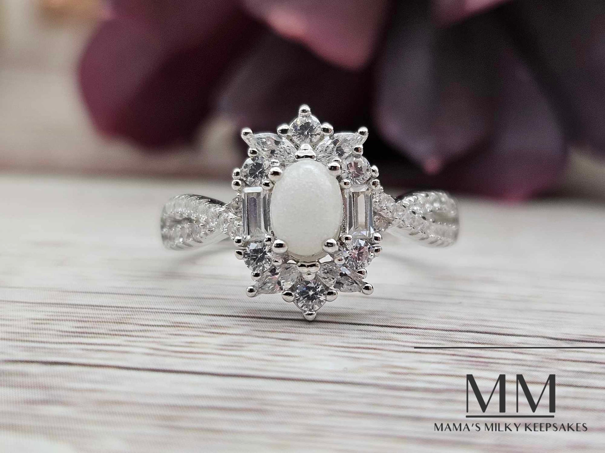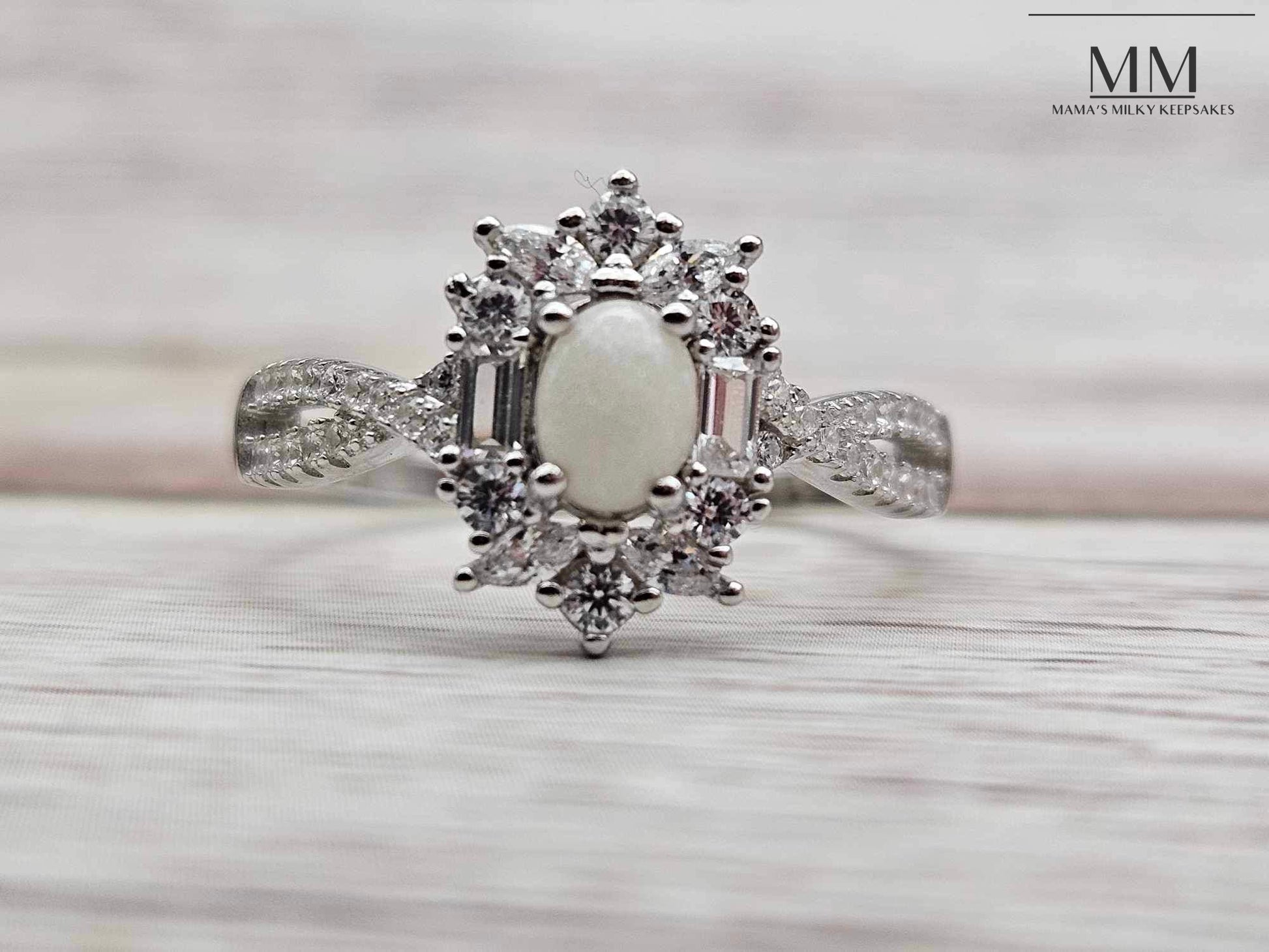 ♡Stone size: 4x6mm oval stone made with your inclusions, this piece can hold anything you want it to hold including breastmilk, ashes, formula, hair, pet hair, pet ashes, gravesite soil, dried flowers, umbilical cord, encapsulated placenta, fabric, etc.