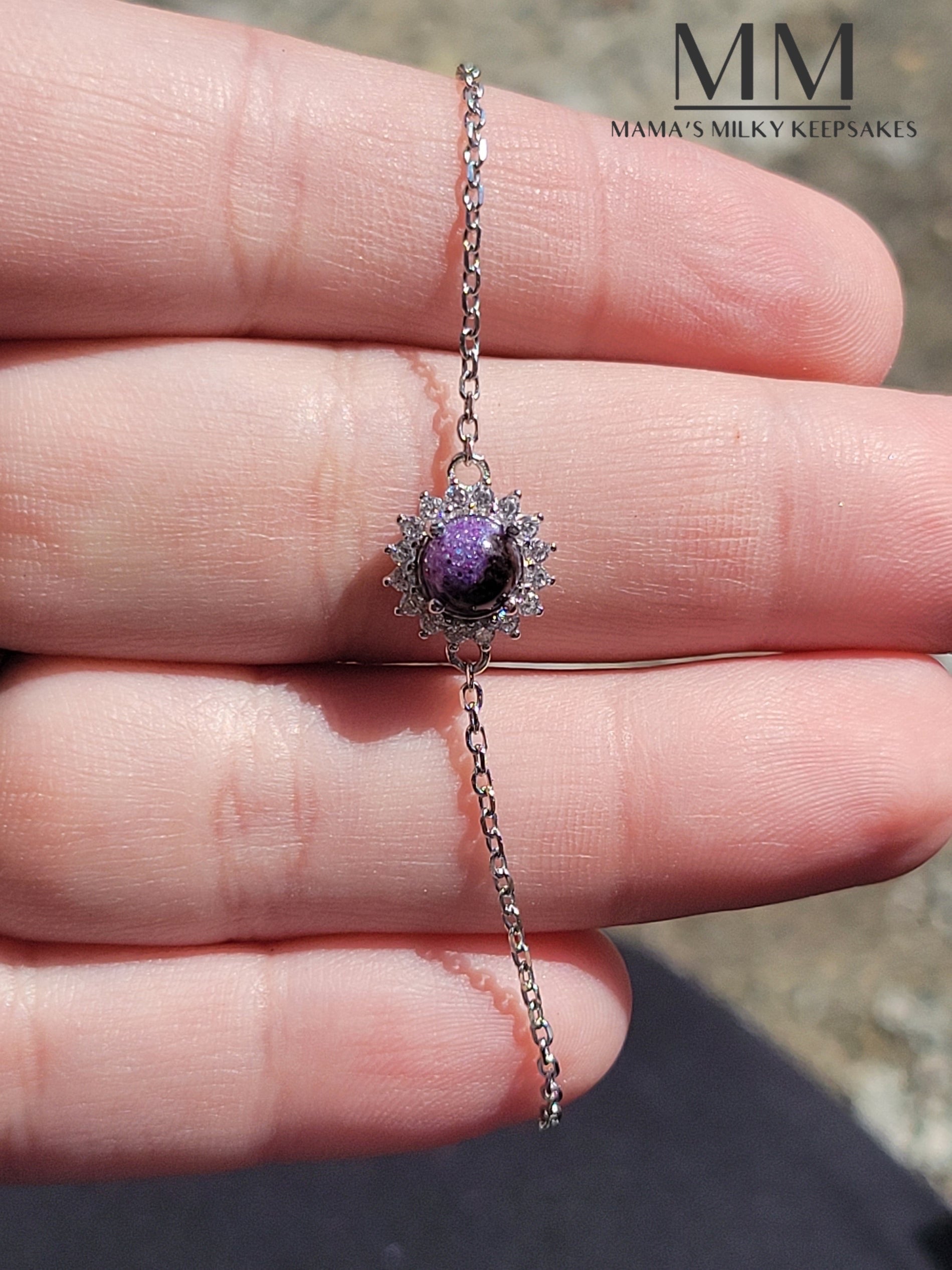 ♡Stone size: 5mm round stone made with your inclusions, this piece can hold anything you want it to hold including breastmilk, ashes, formula, hair, pet hair, pet ashes, gravesite soil, dried flowers, umbilical cord, encapsulated placenta, fabric, etc.